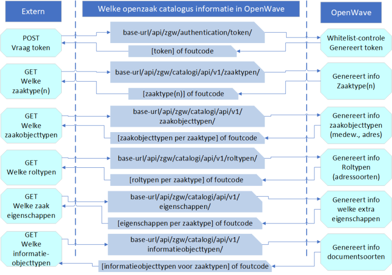 Om cataglogus-informatie (meta-informatie cq identifiers over zaaktypen, eigenschapen ,rollen, documenttypes e.d.) op te halen is het volgende berichtenverkeer mogelijk: