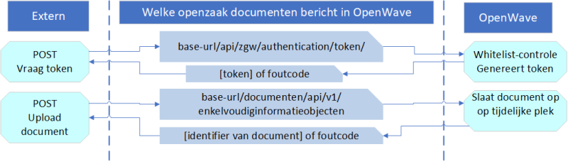 Op het endpoint base-url/api/zgw/zaken/api/v1/zaakinformatieobjecten/ kan een POST worden geplaatst met de UUID van een zaak (zie response bij creëer nieuwe zaak) en een UUID van een eerder geüpload document (zie uploaden van document). OpenWave kan hiermee het document aan een zaak koppelen en dat document op de juiste bestemming plaatsen.